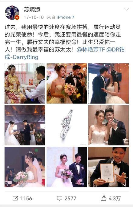 因为苏炳添与其夫人,初中便相识,两人从校服到婚纱,这样相濡以沫的爱情着实使人羡慕。