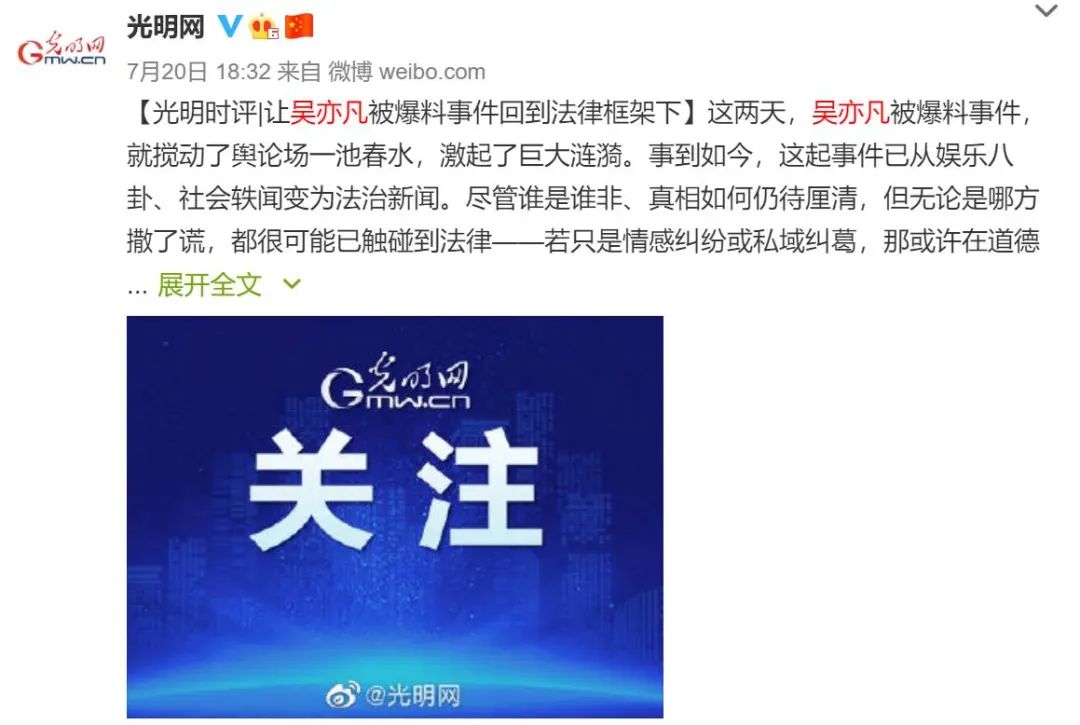 光明网 法律不会纵恶,法律面前,也没有爱豆与粉丝的身份之别,都是平等主体;不认舆论策略的好坏,只认事实证据。