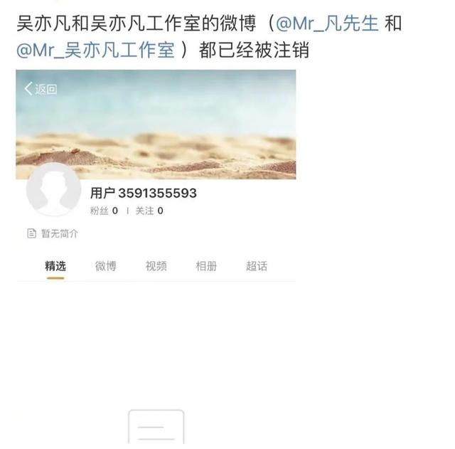 8月1日夜间,吴亦凡个人微博@Mr_凡先生 及其工作室微博@Mr_吴亦凡工作室 已无法查看。目前,这两个账号页面均显示: