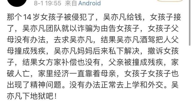 前几天中午还进吴亦凡贴吧看了看,里面很多人说支持吴亦凡。
