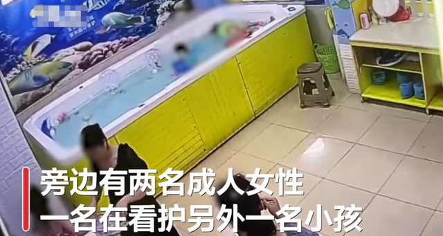 可以看到,当孩子在泳池中奋力挣扎时,两名看护的成年女性就站在泳池边不远处,其中一人在照料一个还没进水的幼童,另一个则一直在背对泳池吃盒饭,期间一直没有回头查看过泳池内的两个孩子,最终导致女孩溺水身亡。