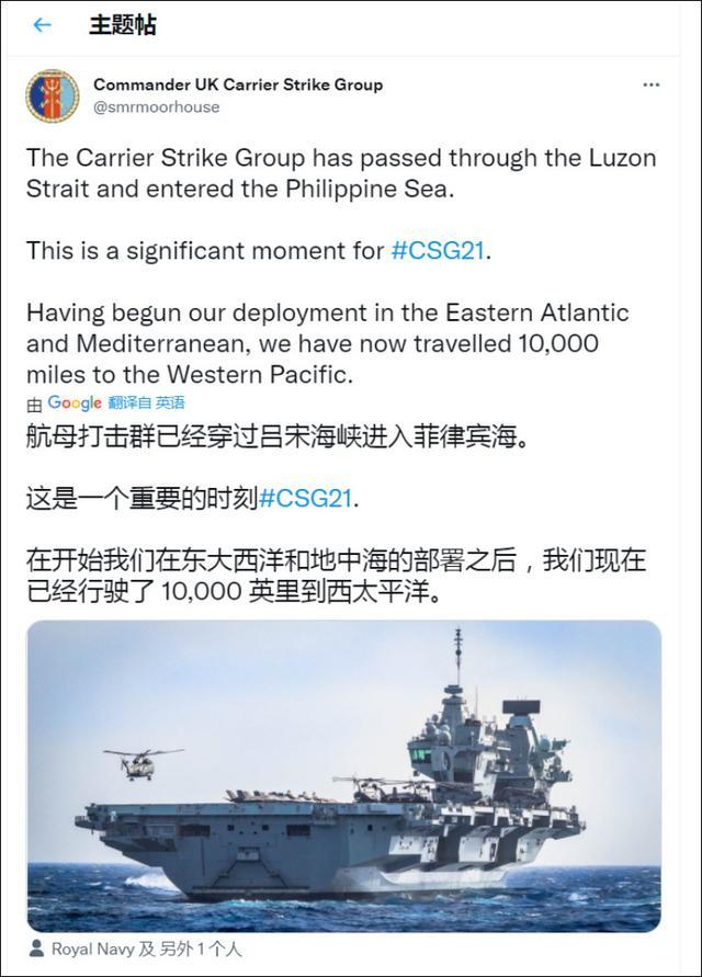 此外,在近日台媒也透露重磅消息,英国伊丽莎白女王号航母编队2日还是通过了巴士海峡,一路沿着台东部外海北上驶向日本。然而期间,中国大陆派出军舰一直紧紧跟随,进行全程监控。英国官方都只提吕宋海峡,而台媒却故意说经过了更近的巴士海峡,但即使台媒夹带私货,英舰还是没有挑衅动作还算识相。