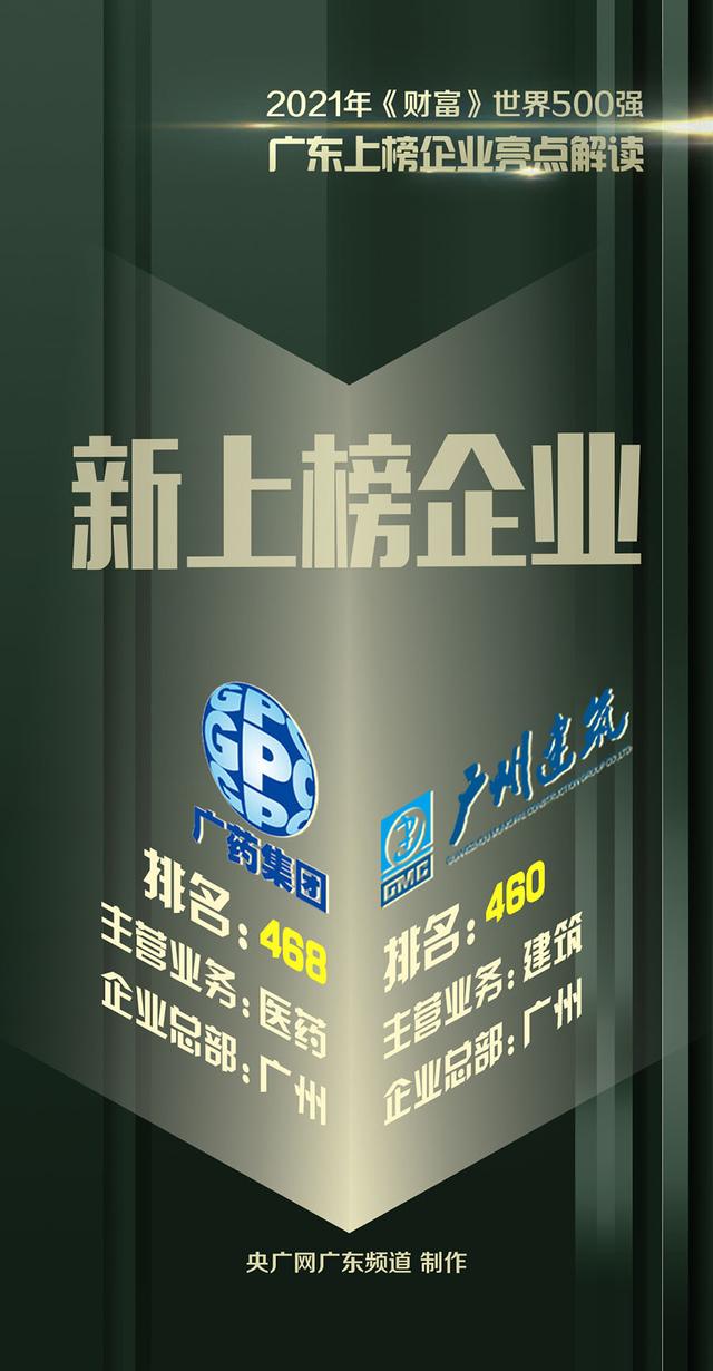 其中,广州建筑以266.82亿美元位居第460位,成为粤港澳大湾区第一个入围榜单的建筑企业;广药集团以260.7亿美元位居468位,成为首家以中医药为主业、进入世界500强的企业。