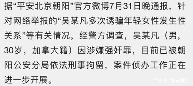 随着7月31日官方通报吴亦凡因涉嫌QJ被判刑拘后,属于他的流量时代也宣告结束。