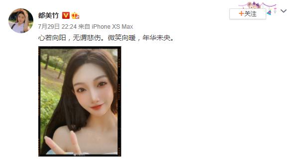 更在7月29日专门在社交平台发正能量感慨文,晒美照露出甜甜的笑容心情好,或已走出抑郁阴影。