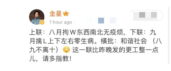 金星则特意写了一副对联讽刺:“上联:七月拘w东西南北无疫烦,下联:八月擒L勤劳百姓零生病,横批:国泰民安。”