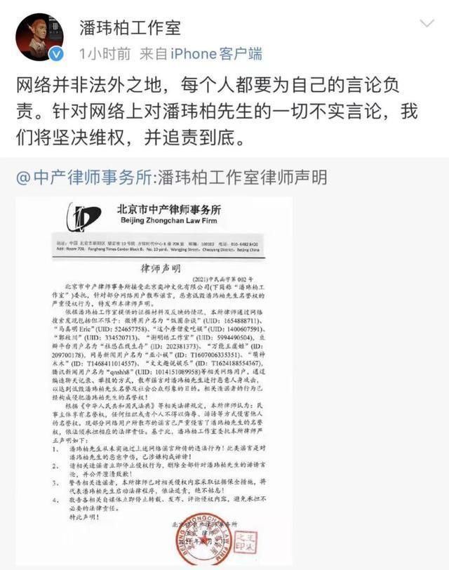 如今,面对这样的“诽谤污蔑",我们要看的不是潘玮柏和林俊杰通过律师说什么,而是他们到底会做什么。如果他们经得起查,这种“诽谤污蔑"忍得了吗?