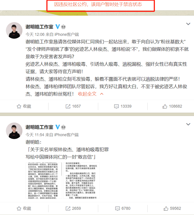 不过,就在谢明皓发文后不久,他的账号就被禁言了。这不得不让人觉得此事更加扑朔迷离。