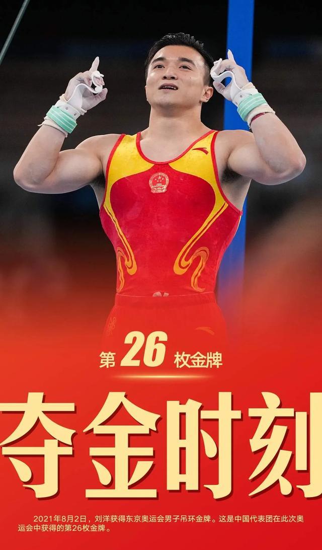 刘洋获得了东京奥运会男子吊环金牌,尤浩获得了银牌,中国代表团在这次奥运会上获得了第26枚金牌。
