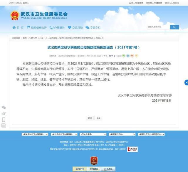 武汉市卫生健康委员会通告截图 网页截图 摄