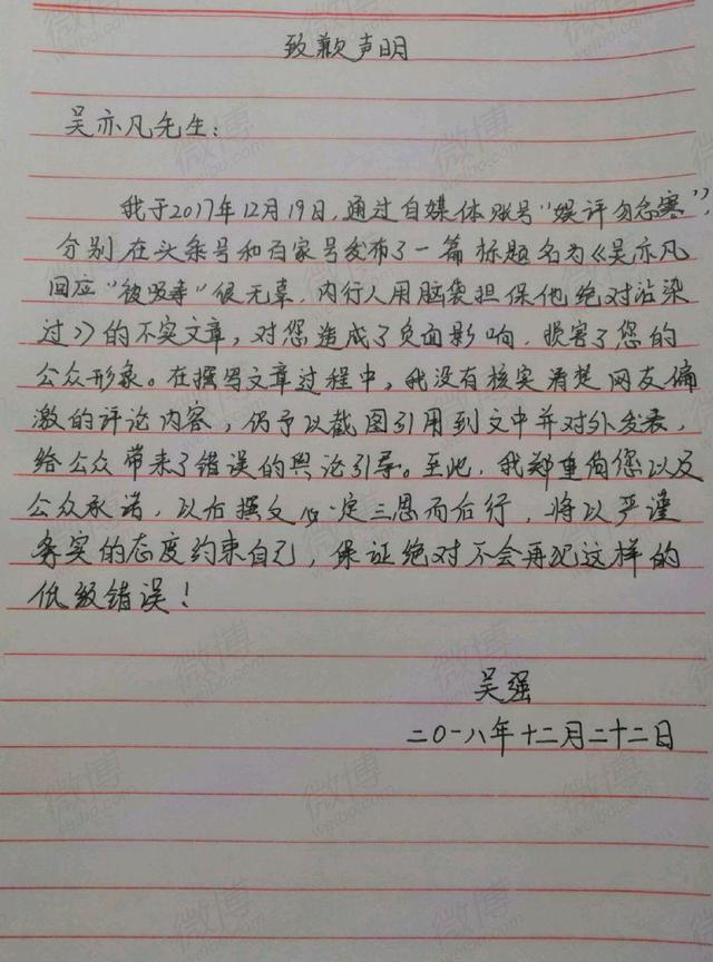 从网友曝光的内容来看,他是因为当初发表文章而被索赔,内容声称疑似吴亦凡吸毒被当成黑粉。