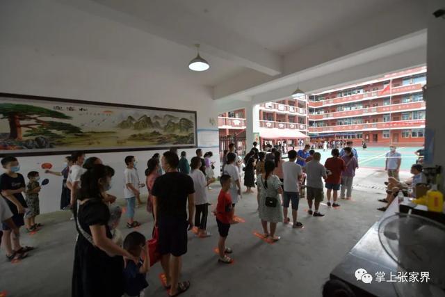 时间:7月31日,市民有序进入大庸桥小学进行核酸检测。(庹兴亮 摄)