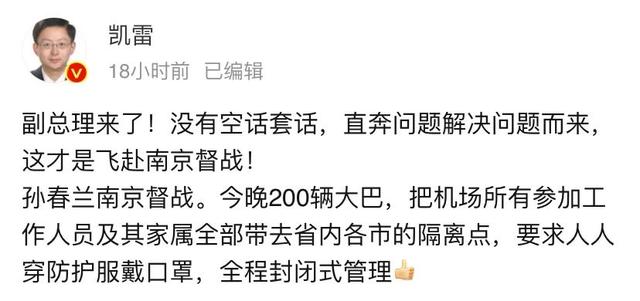 继国家疾控局局长刚刚到南京指导防疫工作不久,7月31日凌晨2:30分,资深媒体人凯雷更新动态: