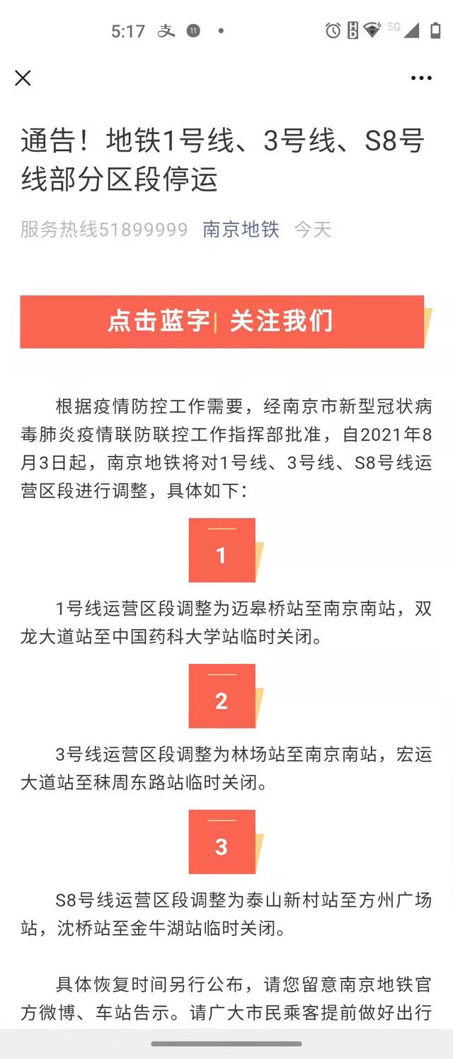 也就是说,市区的秦淮、鼓励、建邺等主城区,开往江宁区的地铁,全部暂停。