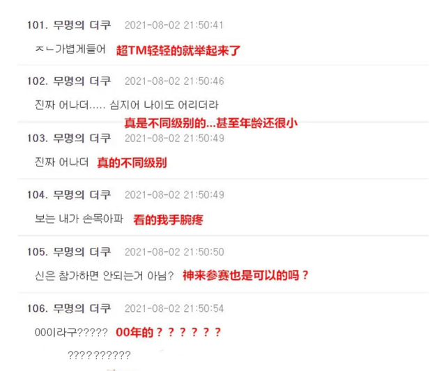 在东京奥运会举重87公斤级以上决赛,中国选手李雯雯打破三项奥运纪录,以绝对优势摘金。赛后,韩国网友也议论纷纷,简直不敢相信李雯雯在这个项目上的超强实力!甚至有韩国网友称:“神也是可以来参加比赛的吗!”“天呐,她居然是一个00后!”“她在这个项目上简直是没有对手,我的天呐!”