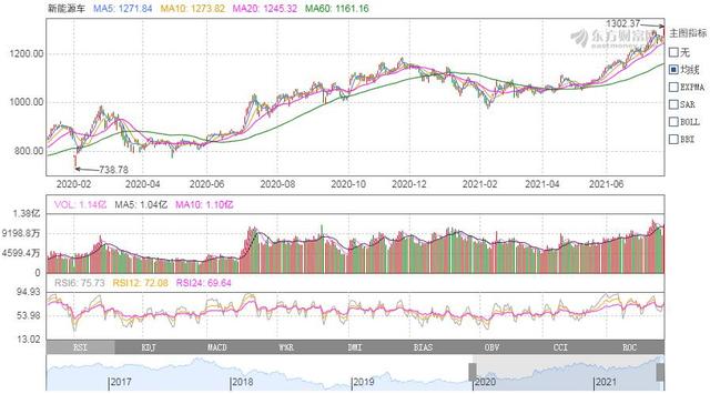 A股和中概股市场上,新能源车为期两年的长线牛市仍在继续。东方财富数据显示,新能源车概念板块已经从2020年初的740点位上涨至2021年8月2日的新高,来到1340点位,走出了慢牛翻倍的长线行情。