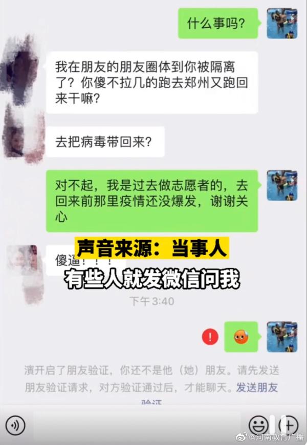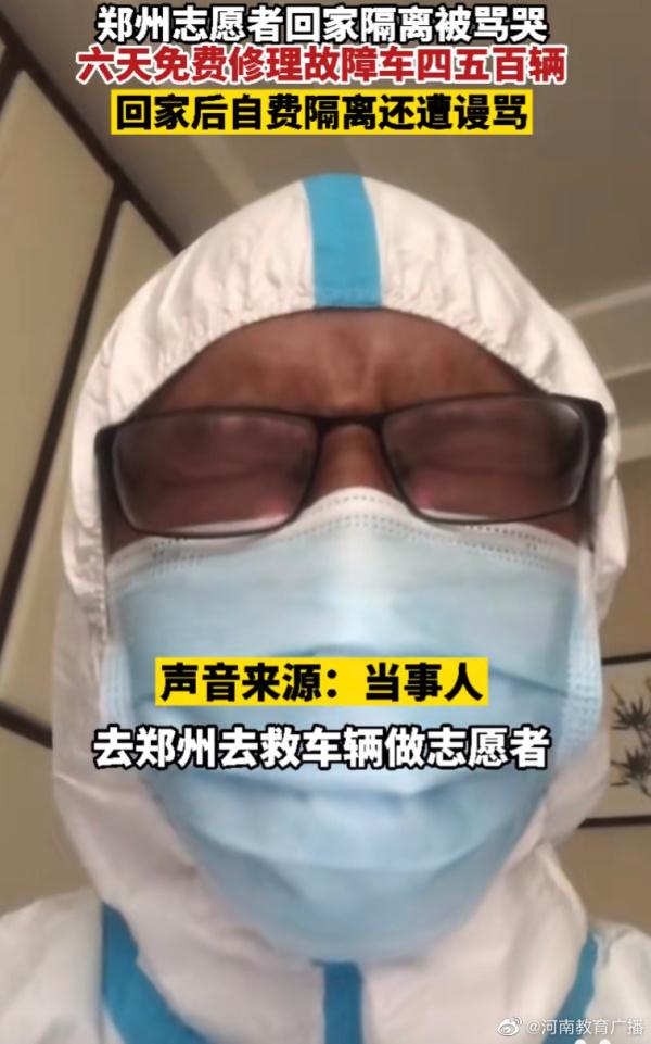 “我去郑州做志愿者是想帮助那边的人民,我从来没有想过把病毒带回花都。我只是在隔离而已,没有确诊。”感到委屈的叶师傅8月2日将自己的经历发布在视频平台上。