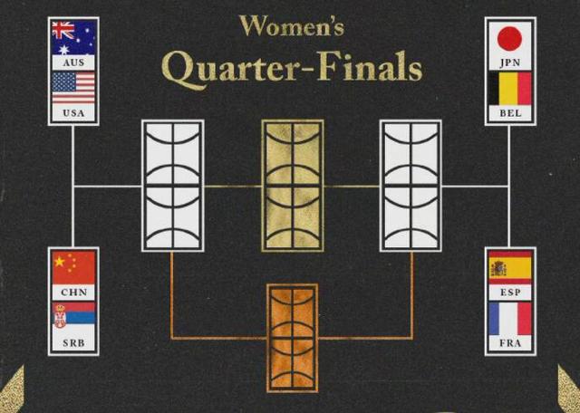 按照本次小组赛8强战绩,中国队、美国队、西班牙队和比利时队是前4号种子为一组,而日本队、法国队、澳大利亚队和塞尔维亚则处于弱势组,根据种子球队回避规则,前4号种子在1/4决赛中将不会直接相遇,所以抽签结果就是前4号种子与后4号种子直接对位。