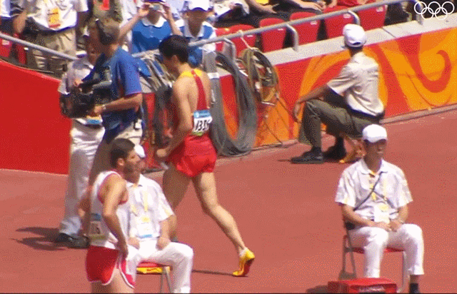 然而当发令枪响起,只见刘翔带着“13亿人、56个民族”的1356号码牌一瘸一拐地回到起点,之后便是解说员宣布他因伤退赛的消息。