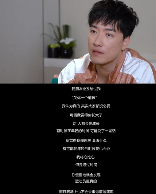 对于“我们欠刘翔一个道歉”的说法,他本人曾温柔地回应:“人都会在成长,在年轻的时候,可能说了一些话,我觉得都能理解,真没什么。”