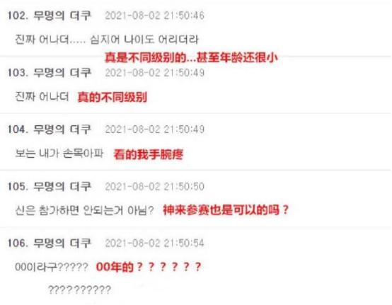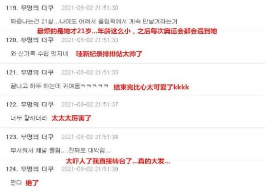 李雯雯的成绩吓懵一众韩国网友,他们直呼“神也可以来参赛吗?”“吓得我直接转台”“年龄那么小,之后每届奥运会都会遇到她”,韩国网友夸张的描述,正证明了李雯雯超猛实力带给他们的冲击感。