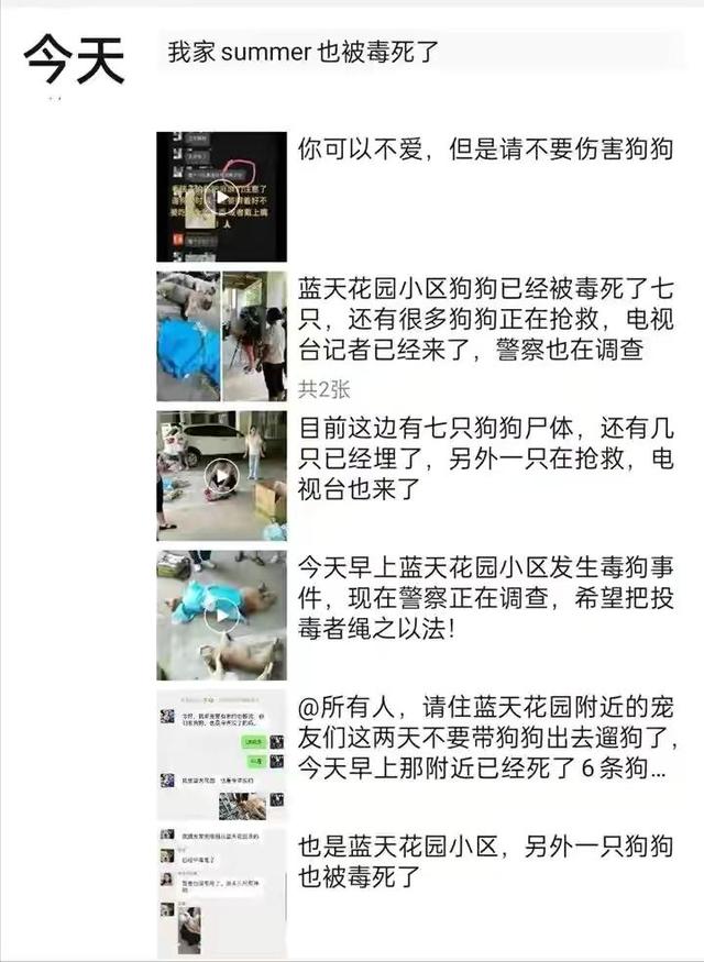 假如是投毒,可见这位投毒者是深受狗狗之害,已经是忍无可忍了。从网友提供的视频、图片看有小型狗,也有体型硕大的烈性狗,而且一天之内就有8天狗狗死亡,可见这个小区养狗之风非常盛行。