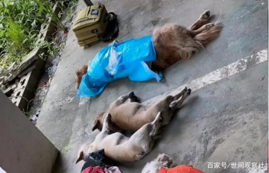 据媒体视频爆料,地上有很多只已经没命的宠物狗。其中一个狗主人抱住自己的狗号啕大哭,令人心痛。一天内死了8只狗,现场有人立马报了案。警方到场狗立马进行了侦查,基本上确定狗是中毒身亡的。目前还没有找到凶手,狗主人们表示一定要将这样心思歹毒的人严惩!