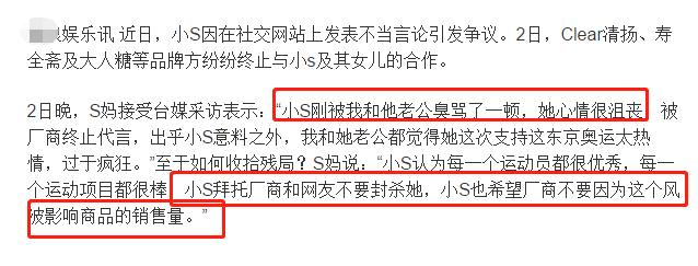 另外根据小S的母亲在接受台湾媒体采访时也表示,小S已经被他们臭骂了一顿,并且还表示小S目前还在求饶拜托厂商不要封杀她。