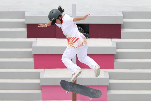 7月26日,16岁的小将曾文蕙在滑板项目女子街式比赛中闯入决赛,她是中国历史上亮相奥运滑板项目的第一人。