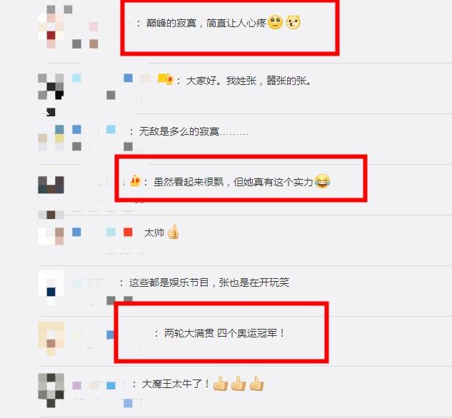 网友纷纷调侃张怡宁大概在自我介绍时会说:“我姓张,嚣张的张”。还有网友表示,这大概就是无敌的寂寞吧,我们这些平凡的人无法理解,真是心疼张怡宁在运动生涯中未逢对手,让她聊表巅峰的无趣。