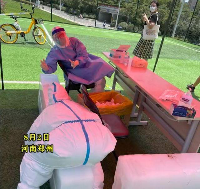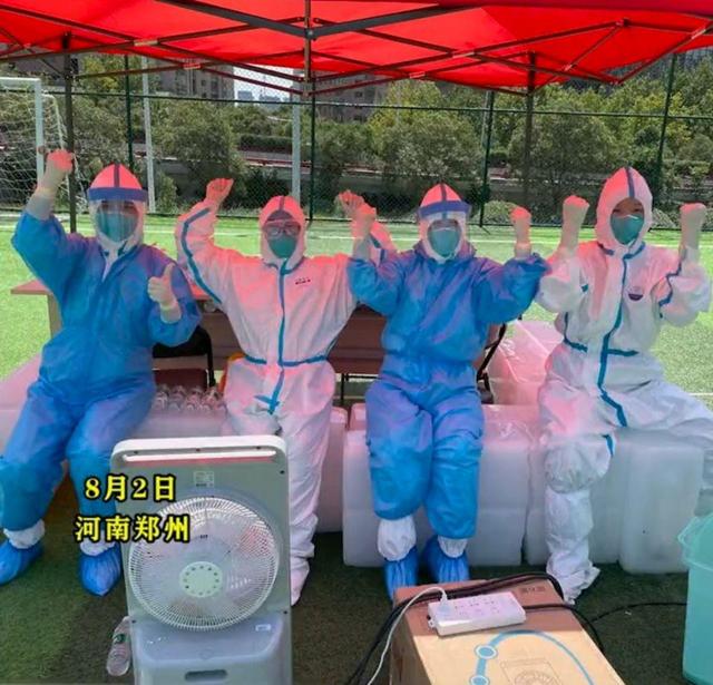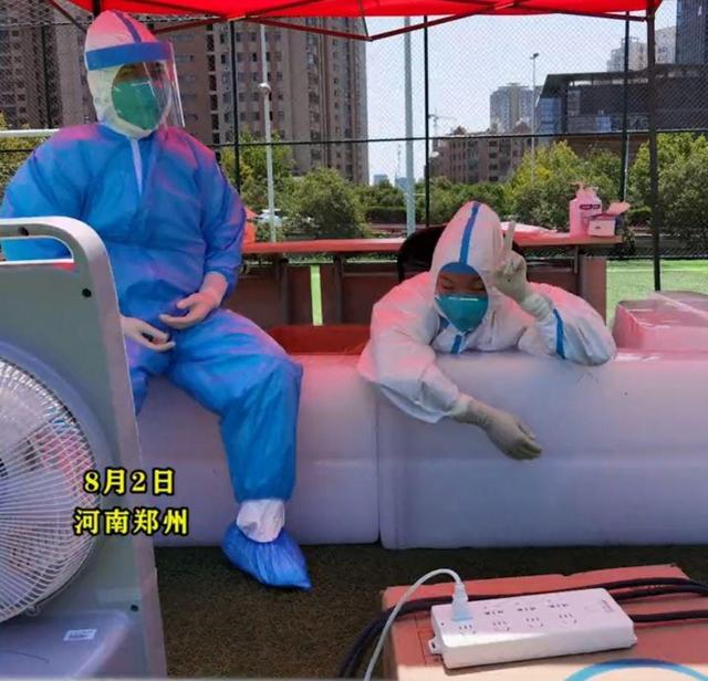 正值三伏天,全国各地,都是一片火热,也包括洪水刚刚退去的郑州,可偏偏这个时候,爆发了突如其来的新疫情。跟全国其他地方一样,又到了医护人员穿防护服奔赴各地的时候了。可现在的气温,正是一年最热的时候,每一名参与核酸检测的医护人员,都得穿上严严实实的防护服,这是安全的需要,也是对他们对群众负责的做法。