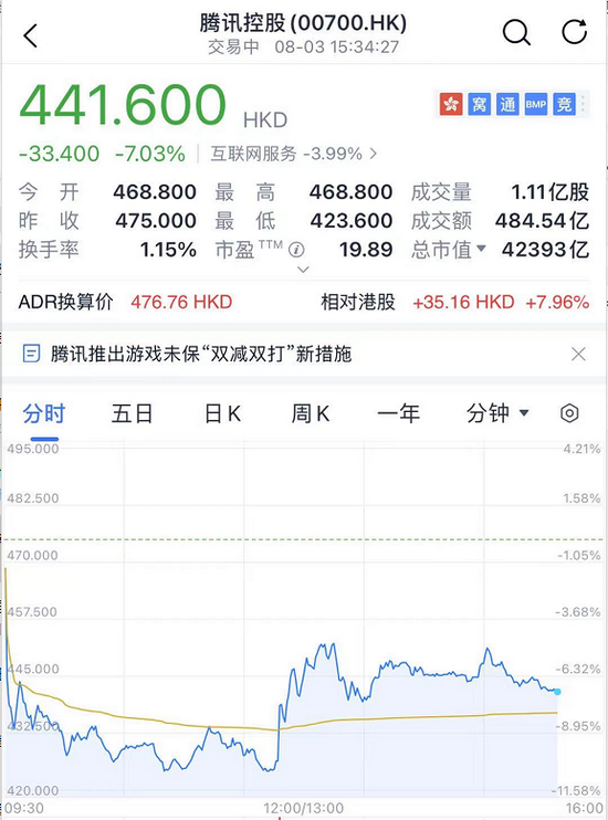报道一出,截至午盘,腾讯控股下跌10.23%,网易股价下跌11.76%,港股中手游跌幅20.94%,8月3日上午三家公司合计蒸发近4500亿。