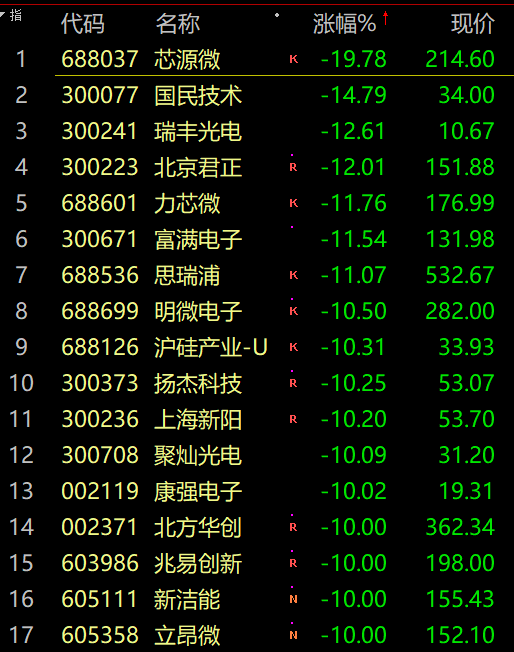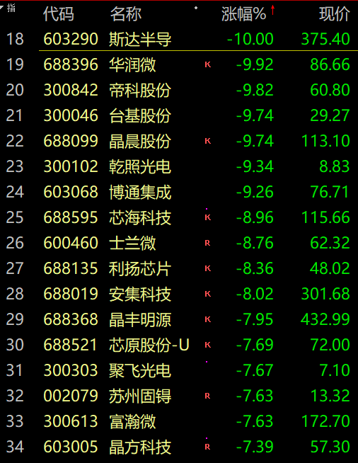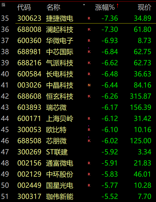 受消息影响,芯片半导体板块全线闪崩,板块中兆易创新、北方华创跌停。紫中芯国际跌超6%。