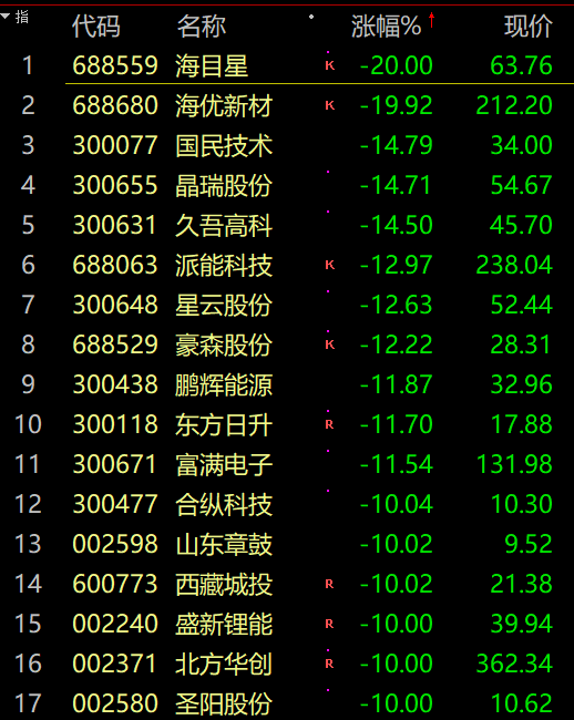 久吾高科跌14%,西藏矿业、西藏城投、永兴材料跌停,盛新锂能、中矿资源、贤丰控股逼近跌停。