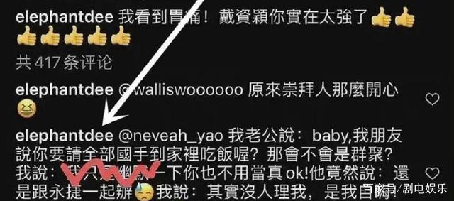 在这条动态下,小S回复网友,她老公说,要请全部“国手”到家里吃饭。