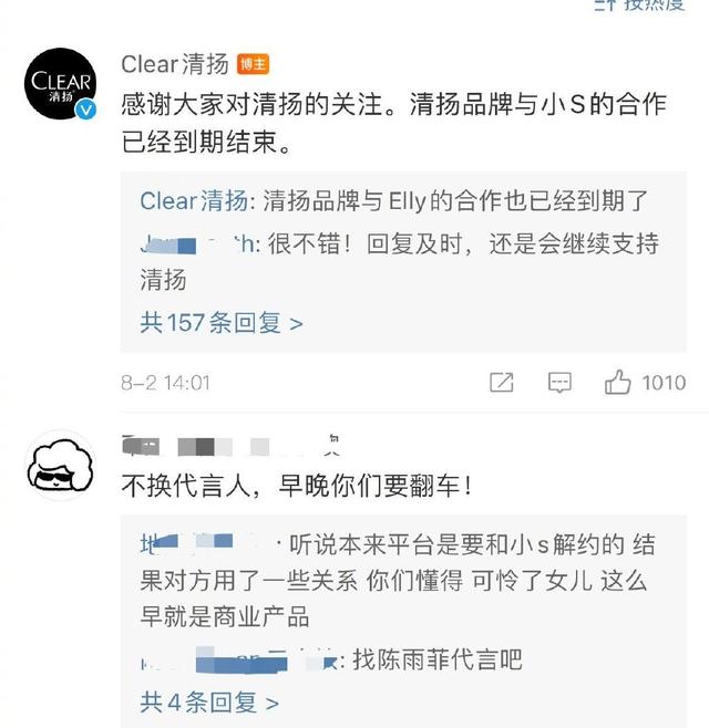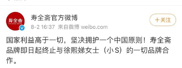 随后,小S在内地代言的品牌方纷纷宣布解约,由于速度之快,让她本人都感到非常的意外,尽管后来在第一时间做出了回应,表示:想好好冷静一下。但从头到尾也没有对于发表这样的言论作出说明。