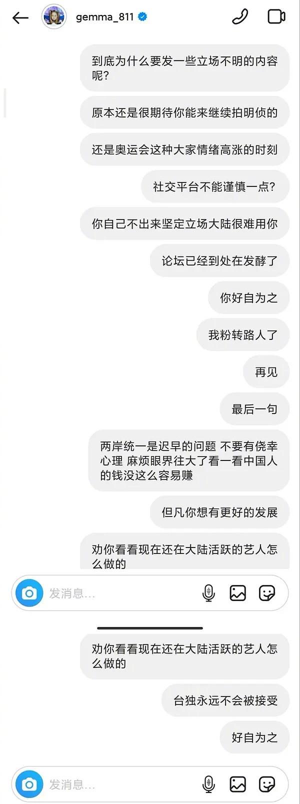 不少网友都直言鬼鬼疑似也是两面人,一边赚着内地的钱,一边TD,但也有不少网友帮鬼鬼说话,毕竟对方没有发表任何的不当言论,上来直接说教一番,是个人都会选择拉黑,虽然有一定的道理,但毕竟对方是公众人物,就应该接受大众的意见,表明立场。