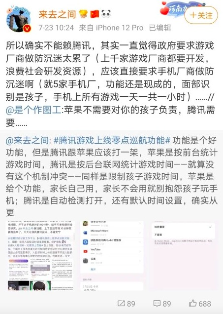 来总疯狂cue腾讯成长守护平台事件后,来总觉得游戏厂商做防沉迷确实有点累,如果换成手机厂商来做或许会更好。其实通过微博CEO王高飞吐槽腾讯零点巡航的功能,就不难看出未成年保护已经进入“深水区”,腾讯零点巡航功能的推出,除了让孩子健康游戏外,似乎也是为了助力大家要三胎,因为有了它再也不用怕孩子偷偷半夜起来玩游戏了。