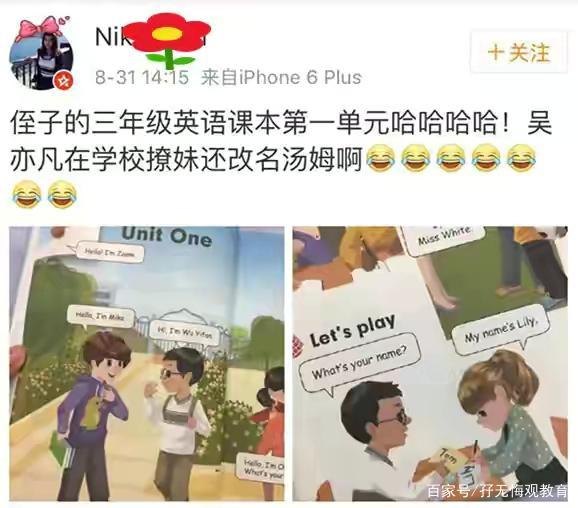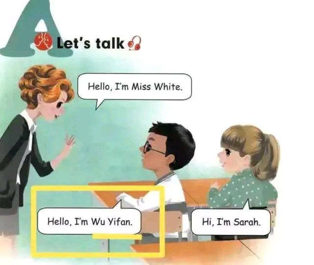 但是,有眼尖的网友发现,吴亦凡的名竟然出现在小学三年级英语课本里。