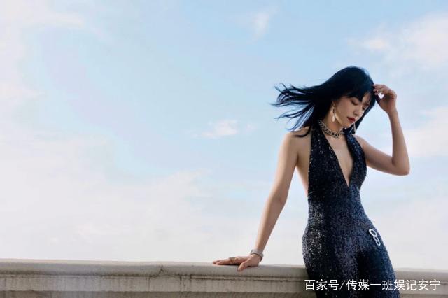 姚晨这一身黑色深V真空连体衣,出自Azzaro家的秋冬高定,闪闪发光,再加上大银链子,穿上就是最靓的仔(女人)。
