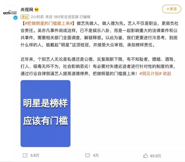 【摘要】 最近,全网平台被这么一条热搜占据:“顶流”明星吴亦凡被刑拘了。图源 影视剧照从网络上的反馈来看,这个事件很大快人心,因为不同于以往