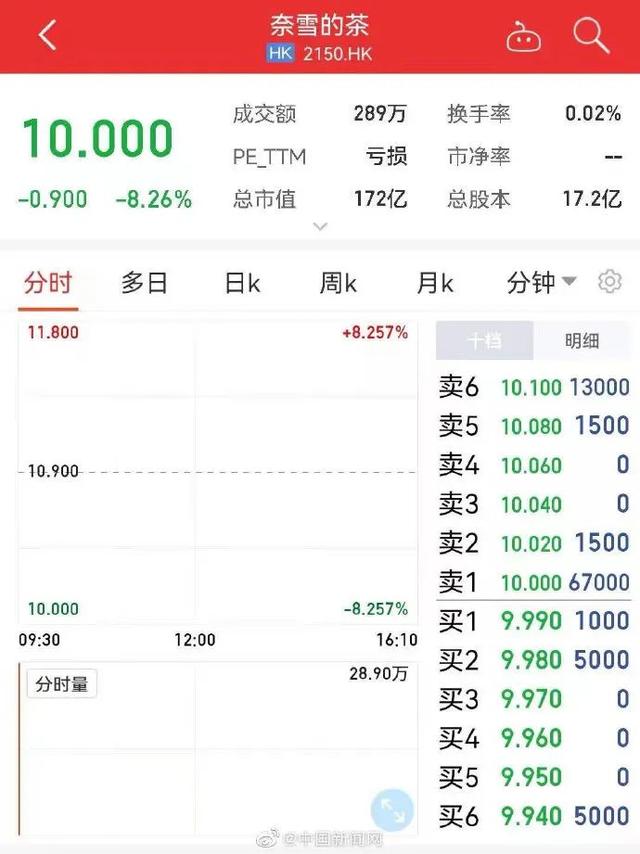 据悉,8月3日上午,港股开盘,奈雪的茶股价暴跌超8%。