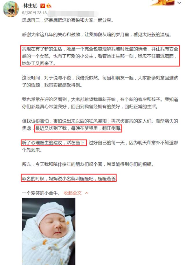 前不久,林生斌在网上晒出自己喜得一女的微博。明明是重新开始了新的生活,但他却在文字中配有“她又回来了”一句,让网友忍不住吐槽他一边又要和现任怀孕生小孩,一边又不放过已逝的人,卖弄人设。