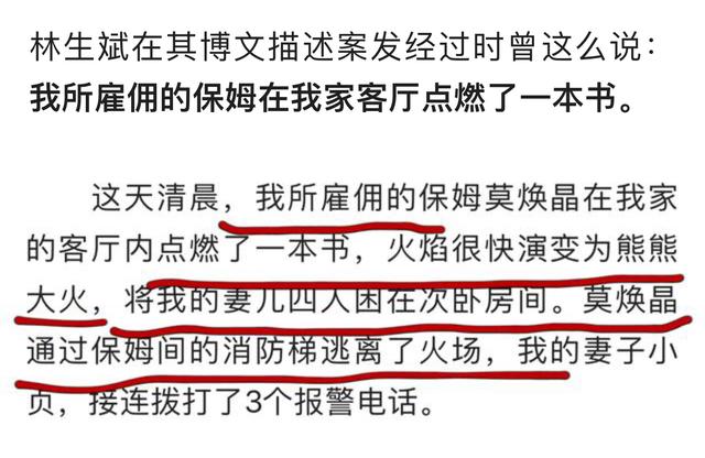所以说林生斌和保姆的暧昧关系大概率是存在的,可保姆放火对她有什么好处呢?既然保姆是和林生斌穿同一条裤子的,那就需要从林生斌说起。