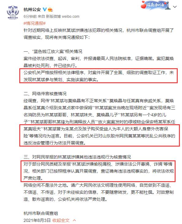 8月3日杭州公安发布林生斌相关情况的调查结果,让看看具体的内容: