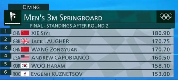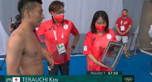 这场比赛除了王宗源和谢思埸表现出色之外,日本选手寺内健引发了很大的关注,在第三轮中,寺内健的动作是5353B,3.3难度,出现了巨大的失误,几乎是直接趴着进入水面,仅仅跳出了29.70分,要知道的是当时巨大失误之后,寺内健三轮的成绩还不如很多选手两轮的成绩呢,确实很尴尬。寺内健这样重大的失误也是令教练非常无奈,只见他的教练团队无奈的将头转过去。