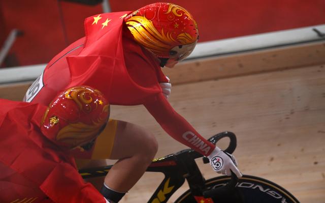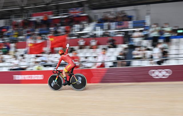 新华社照片,伊豆,2021年8月2日 (东京奥运会)(26)场地自行车——女子团体竞速赛:中国队夺冠 8月2日,中国队选手钟天使夺冠后向看台致意。 当日,在东京奥运会场地自行车女子团体竞速赛决赛中,中国队夺冠。 新华社记者贺长山摄