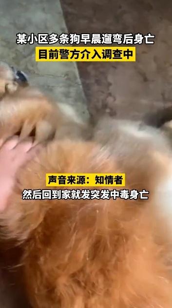 据了解,此小区已有八条狗出现相同症状后死亡。目前,警方已经介入,具体原因还在进一步调查中。