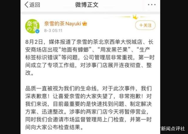 8月3日凌晨,奈雪的茶官方账号对此事进行回应:门店每个月都会进行虫类消杀,力求确保食品安全,对于新鲜水果等原材料的使用也有极高标准,接下来会进一步对食品安全相关的事项进行稽查。
