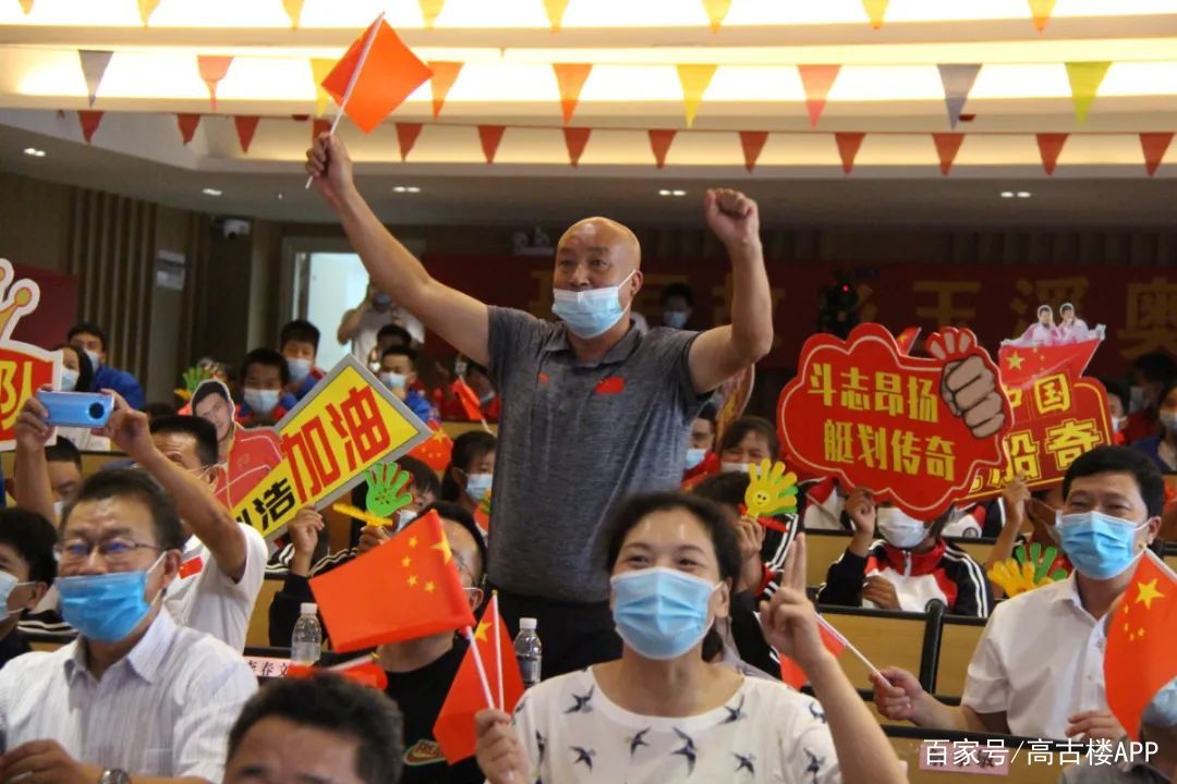 10点53分东京奥运会赛场,男子1000米双人划艇决赛激烈开赛。刘浩、郑鹏飞表现出色,前半程一路领先。大家怀揣着激动的心情观看这场决赛直播,现场热情高涨场,大家齐声高呼“刘浩加油,中国加油!”手中拿着的五星红旗随着此起彼伏加油声挥动。刘浩2岁的孩子在屏幕里看到他熟悉的身影时,也用稚嫩的童声说出:“爸爸,加油!”